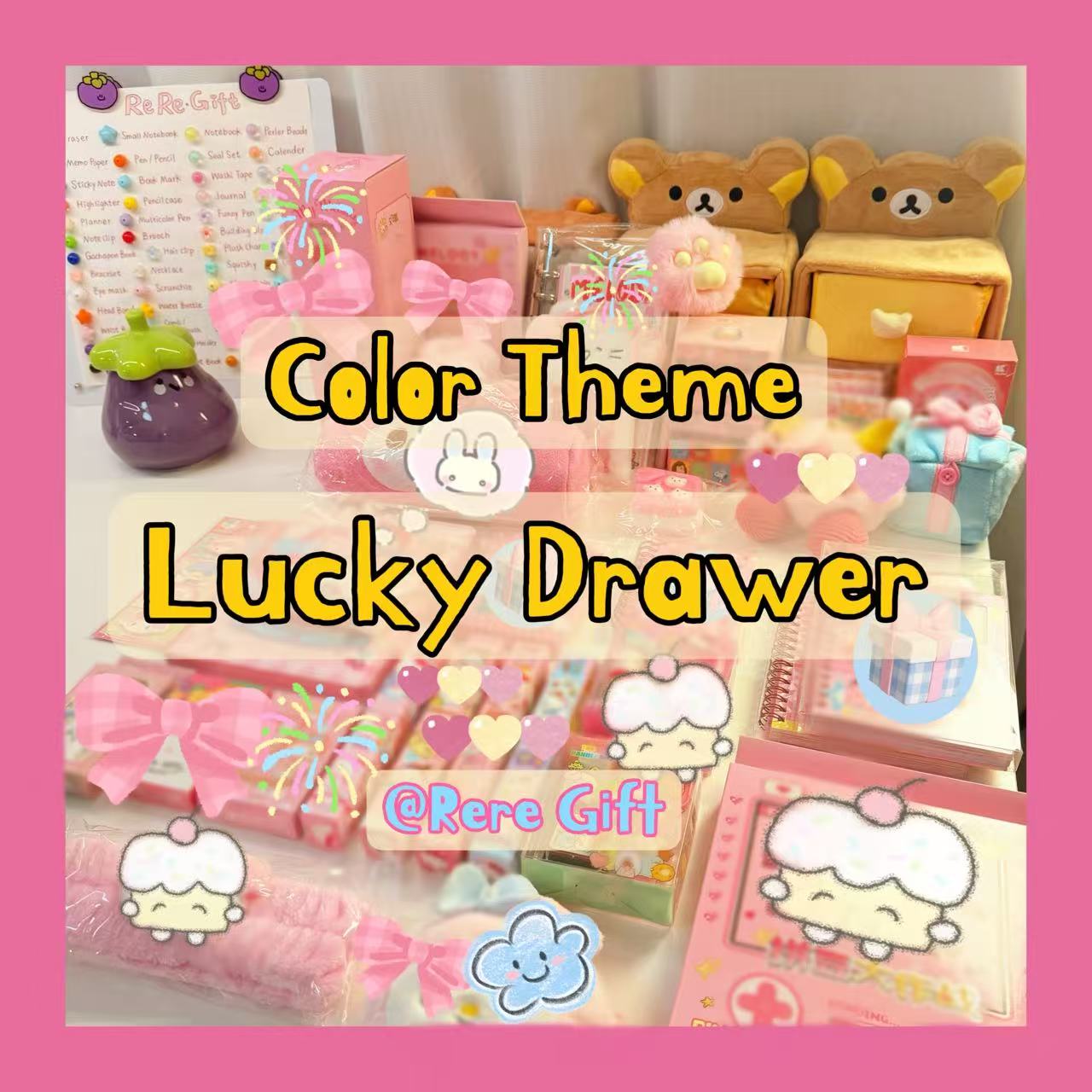 A lucky drawer with approximately 18 items✨, all in the same color theme. Fun, coordinated, and full of delight!